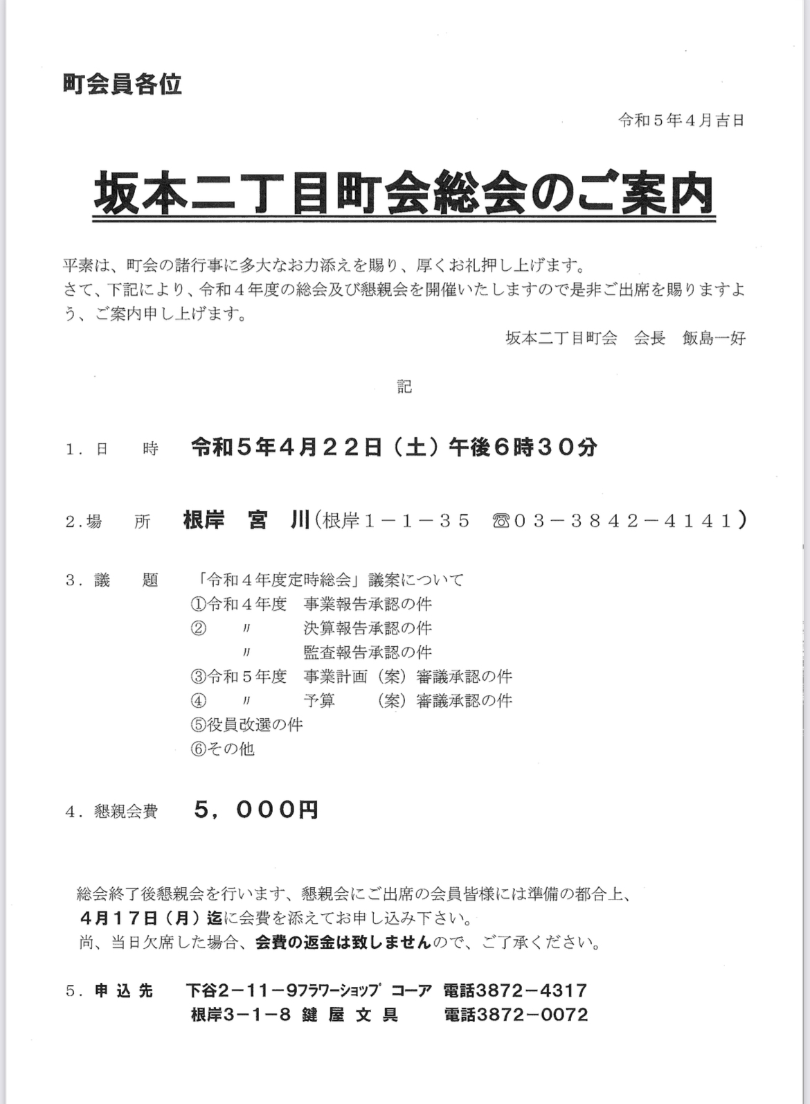 平素は、町会の諸行事に多大なお力添えを賜り、厚くお礼押し上げます。
