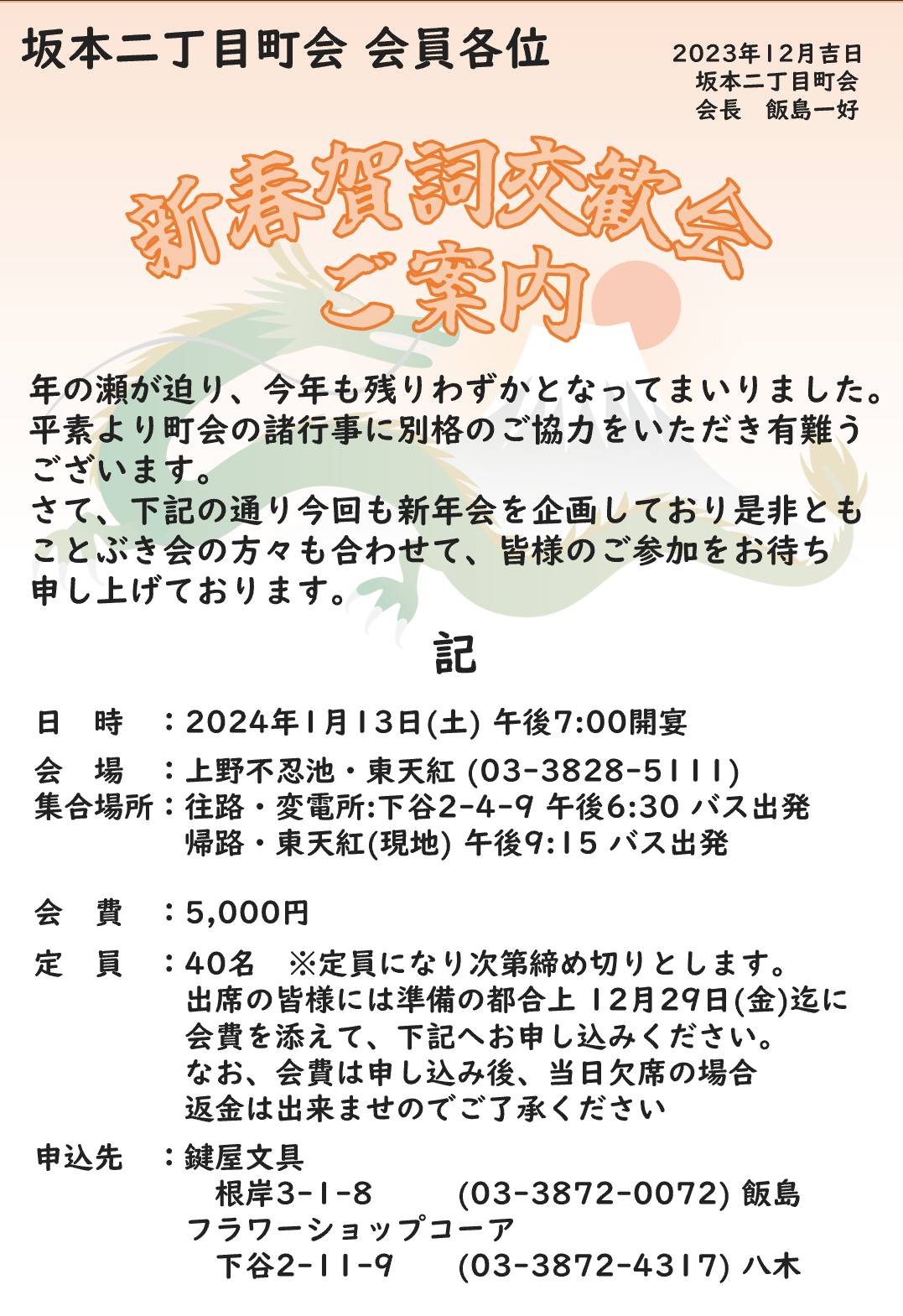 平素は、町会の諸行事に多大なお力添えを賜り、厚くお礼押し上げます。